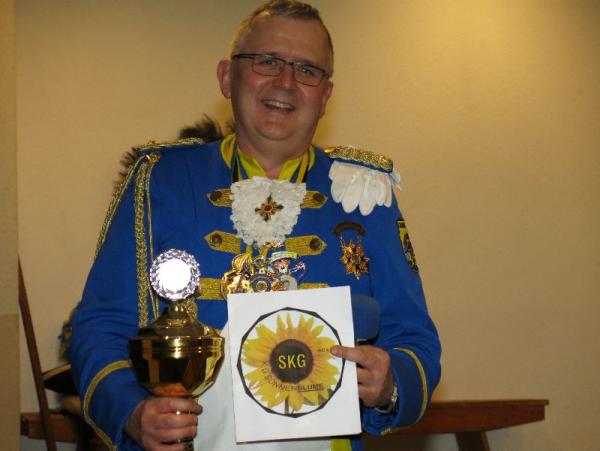 Beim abschließenden Fischessen erhielt Torsten Gerards, 1. Vorsitzender der KG, den Klopspokal. Er hatte in einer E-Mail unseren Verein umgetauft in „KG Sonnenblume“.
