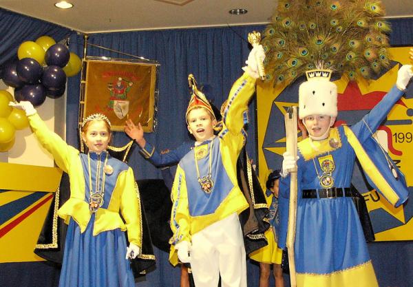 Bei der Kindersitzung wurde das erste Kinderdreigestirn proklamiert. Es waren die Kinder des Erwachsenen-Dreigestirns, Tobias Berzborn, Annalena Döpp und Stefan Fischer.