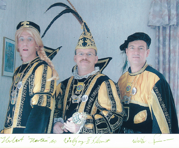 Bei der 2. Proklamation im Festzelt wurde das neue Dreigestirn Prinz Wolfgang II. (Schmidt), Bauer Walter I. (Prümmer) und Jungfrau Herta I.(Herbert Mertens) von ihrem „Ägyptischen“ Gefolge ins Zelt begleitet.