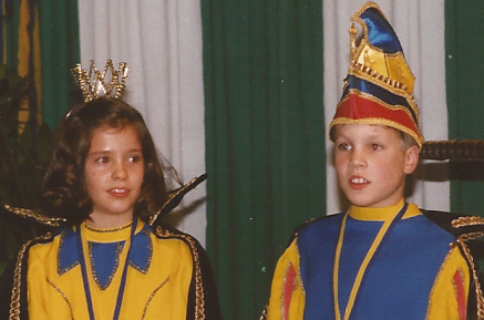 Tobias I. (Wilden) und Christina I. (Haas) standen an der Spitze des Simmerather Kinderkarnevals. Die Sun Singers – Anima Leister, Thomas und Michael Haas hatten ihren ersten Auftritt. (Session 1999-2000).